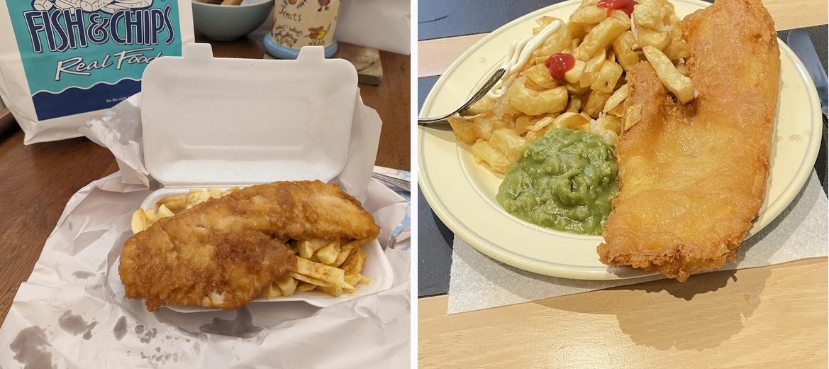 Friendly staff. They only do English meals. Not a huge choice, various pies, choice of fish size. Because they only have a choice, which is English meals they are really good. You order them when you get to the till and get a number, then go to wait. It's a really good set up and well thought out I think. I can't have dairy so I just get sausage and chips, sometimes peas but I've found that a lot of the time they are hard, so if you don't mind them hard or are willing to take a chance like I do then it's fine. It's our go to chippy if we just want fish and chips, or me with just chips or sausage and chips! I'd definitely recommend it though, the chips are gorgeous and real chips. Well worth a visit. I think they only take cash which is worth considering before you go.